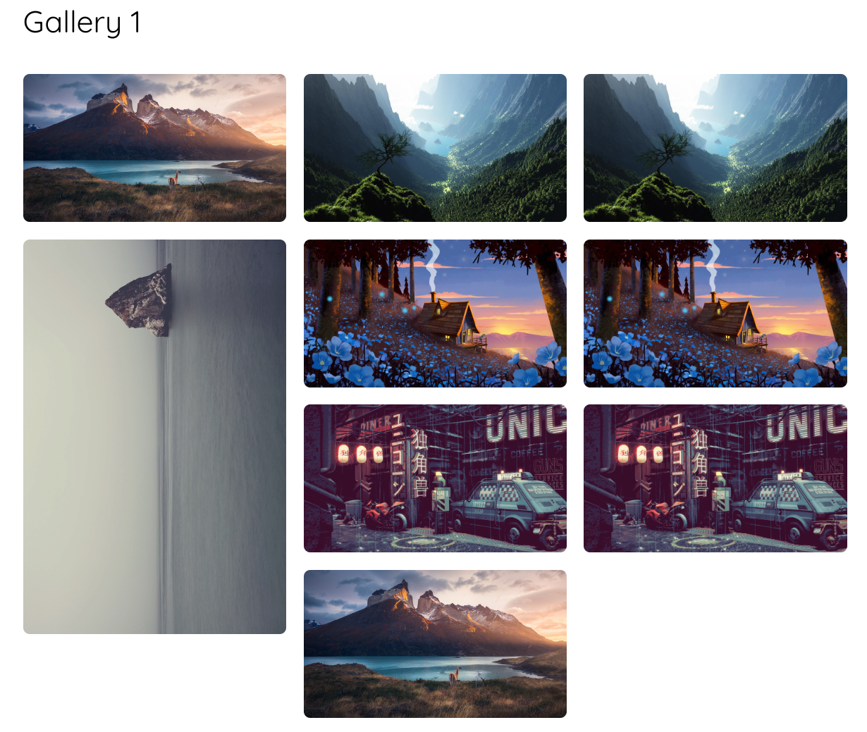 Wenn das CSS und Javascript heruntergeladen, erstellt und integriert wurde, kann eine Galerie mit HTML erstellt werden. Dazu wird der HTML-Code einfach per Copy&Paste in eine Markdowndatei eingefügt. Jekyll sorgt für den Rest.